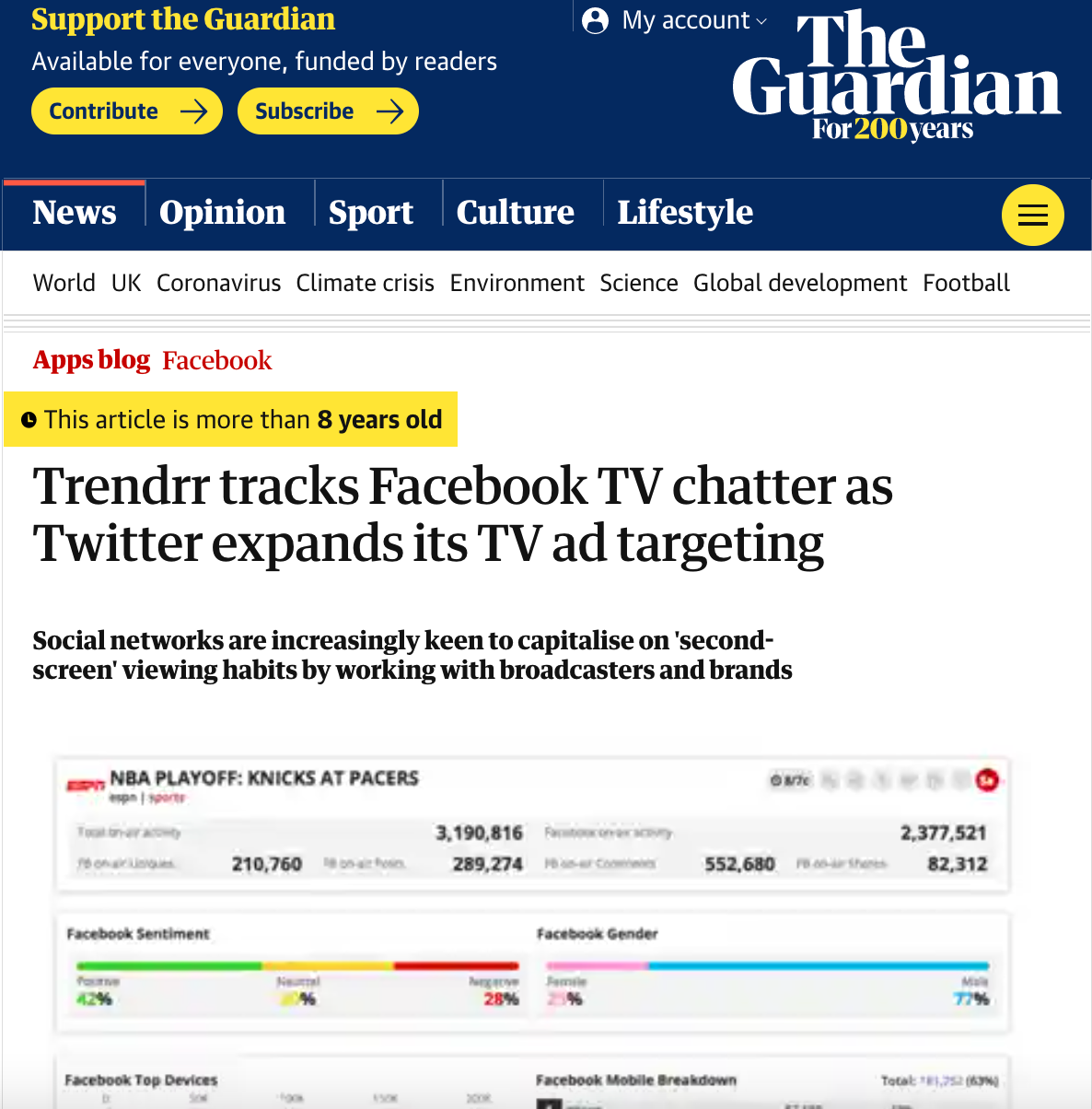 Fabric acted as CMO of Trendrr, leading its acquisition by Twitter. Along the way we forged strategic partnerships and generated a lot of media, some of which is below.